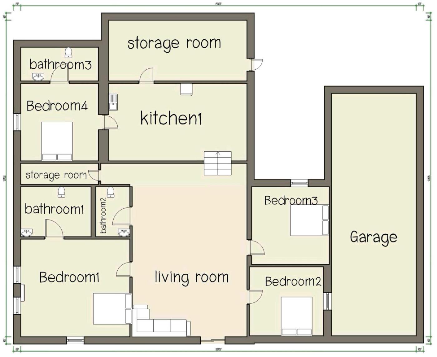The holiday home consists of 5 separate bedrooms, 3 bathrooms and a living room.